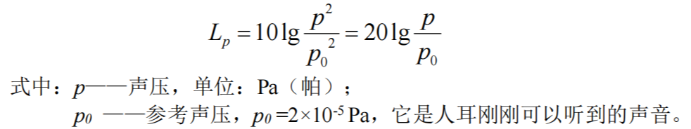 其实I为声强;I0为参考声强,一般取I0=10-12 W/m2,这是相应参考声压级P0=2×10-5 Pa 时的声强。一般情况下可以认为声压级等于声强级。